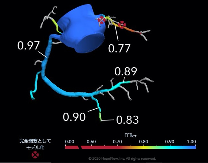 冠動脈疾患の診断を中心に2020年度は911件の心臓CTを施行しました。従来の解析に加え、FFR-CTによる非侵襲的心筋虚血の評価も行っています。その他、大動脈弁狭窄症に対する経カテーテル大動脈弁置換術の術前評価の他に、心機能評価やカテーテルアブレーション術前の肺静脈画像(心房細動治療)の提供などを行っています。