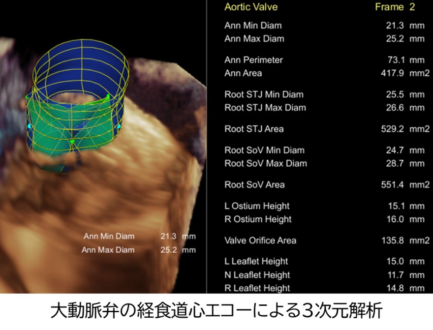 心臓弁膜症術前の評価、左心耳血栓評価、感染性心内膜炎のスクリーニング、心房中隔欠損症や卵円孔開存症の評価などを中心に行っています。近年、器質的心疾患の治療は急速に発展しており、特に心臓弁膜症は従来の開胸手術に加えてより低侵襲であるカテーテル治療を行う割合が増えています。当院では経カテーテル大動脈弁留置術(TAVI)を行っており、心エコー、特に経食道心エコー検査による術前・術中評価の重要性が高まっています。今後は僧帽弁や三尖弁に対する治療、左心耳閉鎖治療などをカテーテルで行う治療が一般的になると予想されますので、日々の症例に対して万全の検査を行うとともに、研修医や専修医の若い先生方が自信を持って検査を行えるようImagingグループ全体で切磋琢磨していきたいと考えています。